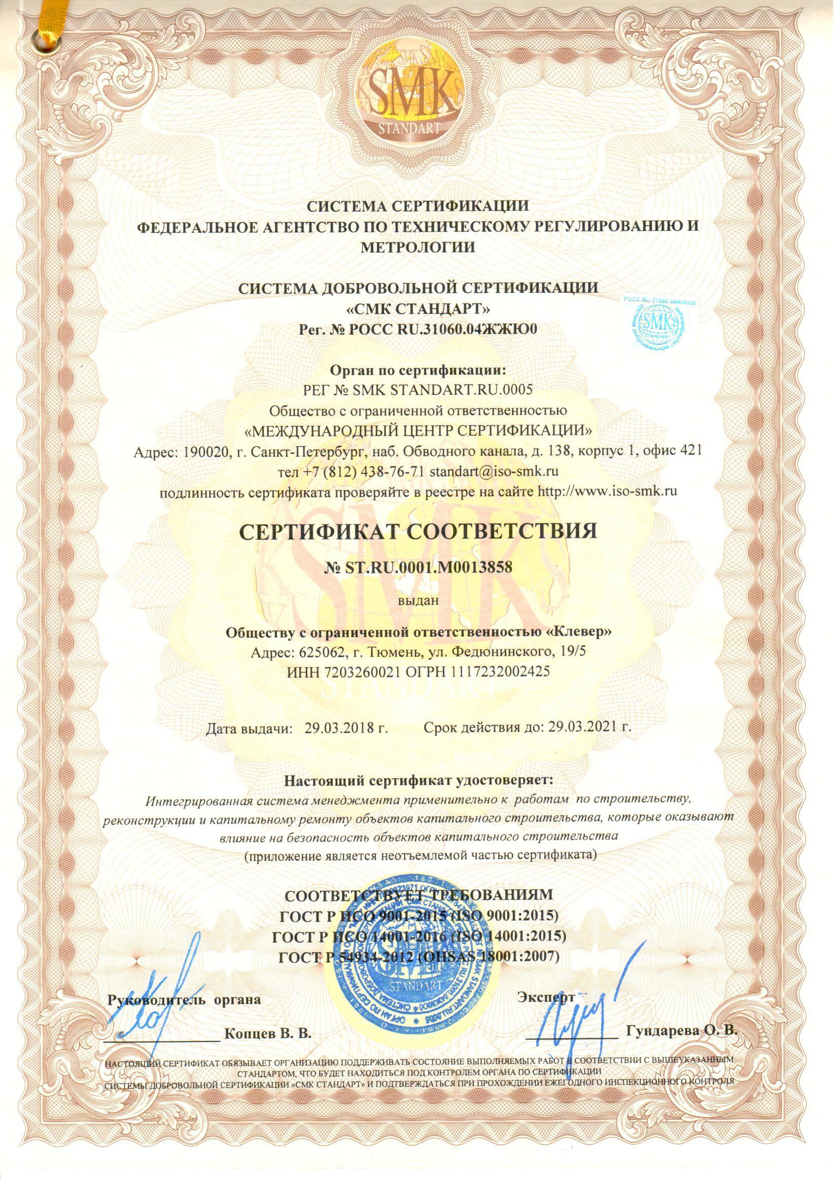 Компания «Клевер» соответствует корпоративным стандартам нефтегазовой отрасли в области промышленной безопасности.